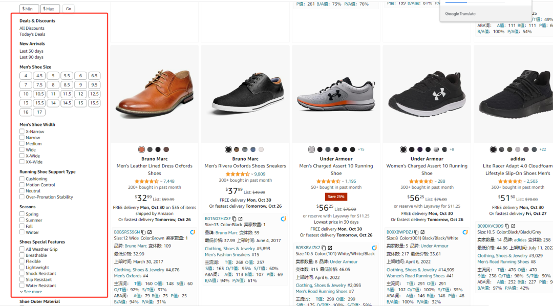 關鍵屬性位置:搜索結果頁的最左側、Listing頁面中,如下圖這些屬性。